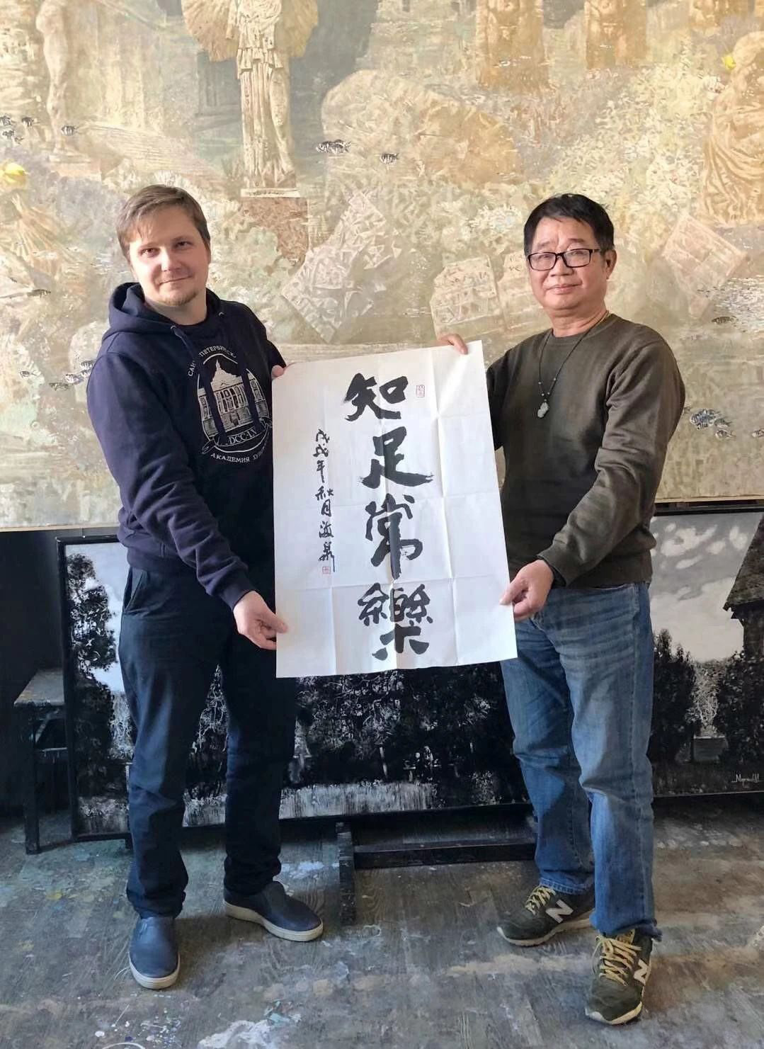 三年前我初次与马克西姆相见时就被他的一组水墨风景画所打动,马克西姆从考进列宾美术学院到副博士毕业,他是一名优秀的学生,是俄罗斯总统奖学金的获得者,是经过严格的具象教学和现实主义绘画教育成长的一代俄罗斯画家。有段时间他还担任素描课教师,但他不满足俄罗斯传统绘画的风格,开始探索研究东方艺术和中国画。