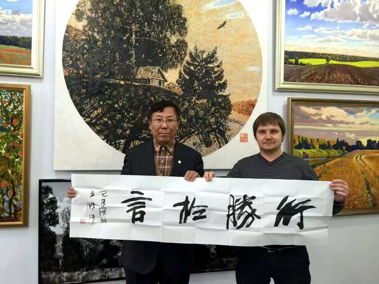 俄罗斯圣彼得堡列宾美术学院的教授马克西姆.摩尔古渃夫.弗拉基米洛维奇,是一位在列宾美术学院从本科获得俄罗斯总统奖学金到博士毕业,是经历过长期严格写实主义训练的俄罗斯实力派画家。在多年与他的交往中觉得他是一位不因循守旧,不断探索变革的画家,中国画家也可从他不断变迁的画风中得到启示。几年前他受中国水墨画的影响写生创作了一批风景水墨画,并尝试用印章构图让画面更具有中国味,他也极其重视与中国画家交流、关注中国画家的作品从中受益。他也曾数次来中国写生办画展。在长期的东西方融合中他的画渐渐变得富有诗意和情调,(当然,他成长生活的城市,圣彼得堡也是俄罗斯伟大诗人普希金的故乡。普希金诗歌对他创作的影响也是不容置疑的),马克西姆的画风从严谨写实到轻松、抒情、随意的转变。近来又痴迷中国水墨画风的创作,为此他还象美国画家波洛克一样用黑色颜料在画布上随意泼撒游戏,探索。如孔子所曰“游于艺”。从马克西姆的艺术经历与教育背景来看,我以为他的创作画风从“紧”到“松”是一个过程,几年后,是要再回到“紧”,传承俄罗斯巡回画派的优秀传统,马克西姆通过几年不同文化和画风的打磨后,他会在关注现实主义题材创作上大有作为的,我期待着。 熊海泉谷雨于武昌